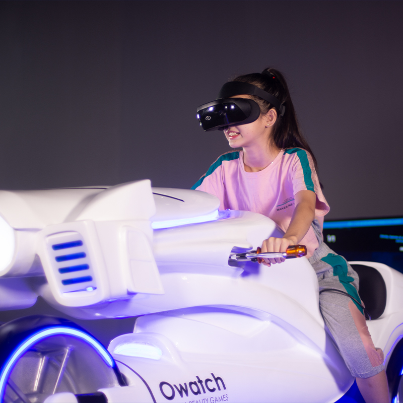 采用獨(dú)創(chuàng)的動(dòng)作捕捉系統(tǒng),32英寸的無(wú)輪轂車(chē)輪、OLED光帶,結(jié)合時(shí)下最具科技感的虛擬現(xiàn)實(shí)技術(shù),超強(qiáng)的爆發(fā)力和性能帶來(lái)史無(wú)前例的變駛體驗(yàn).結(jié)合自主設(shè)計(jì)的游戲內(nèi)容,光影摩托車(chē)直正將視覺(jué), 聽(tīng)覺(jué)和動(dòng)感完美地為一體。玩家身臨其境地感受前所未有的驚奇刺激