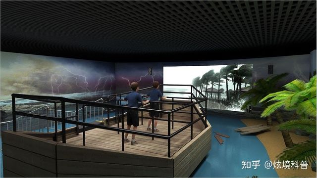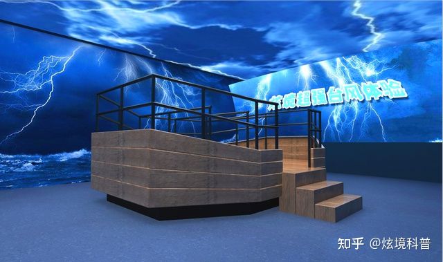 臺風體驗館現(xiàn)場模擬效果逼真,音效一流,立體感強。運用影音、風效和電子噴霧技術,通過噴霧、燈光、出風、音響、影像多媒體等系統(tǒng),為體驗者模擬出一個臺風來臨時的真實場景。
