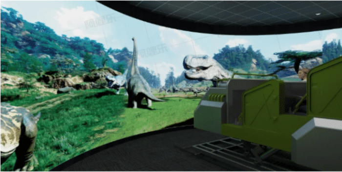 觀眾被環(huán)形包裹的畫面和多路立體聲所包圍,實現(xiàn)比現(xiàn)實更逼真的照明、音響和圖像效果等。